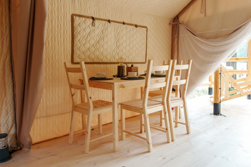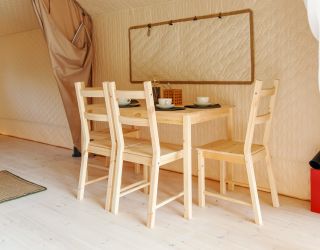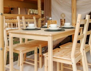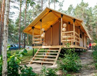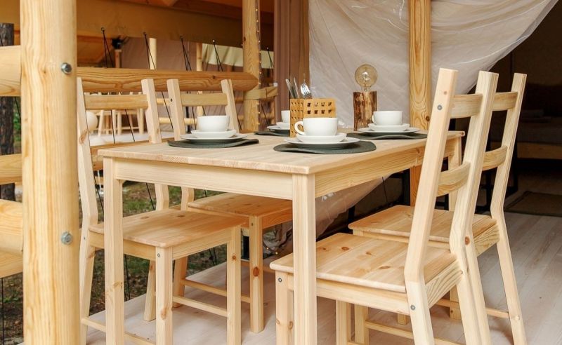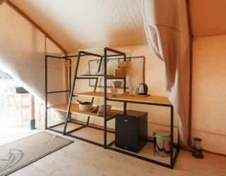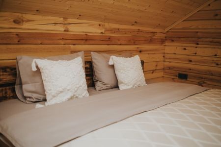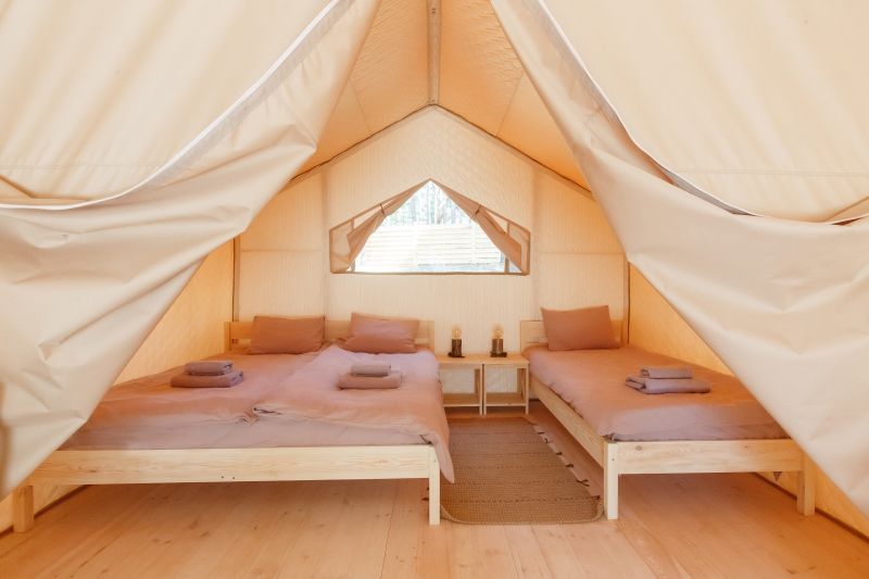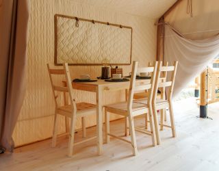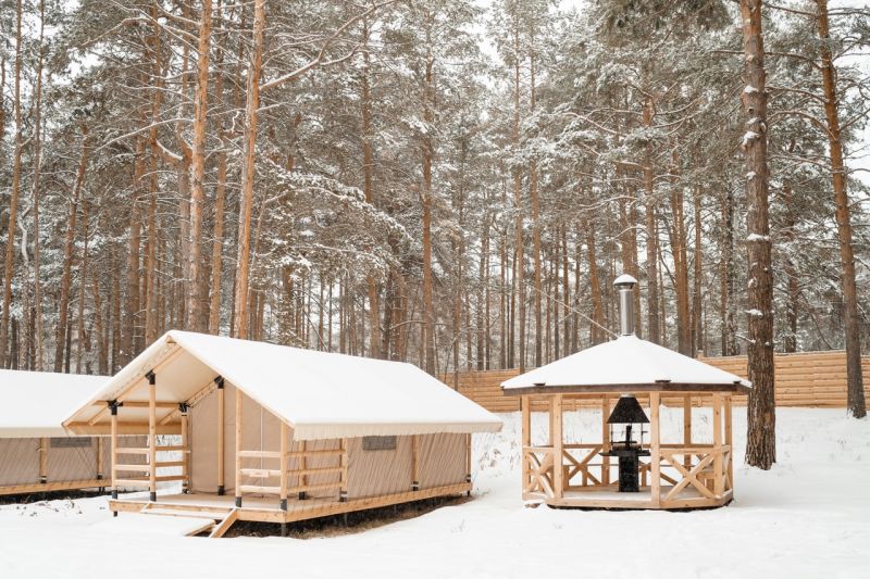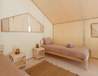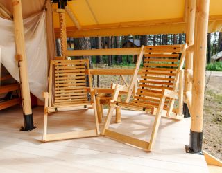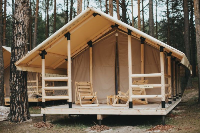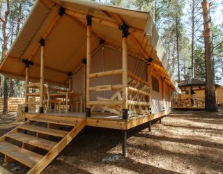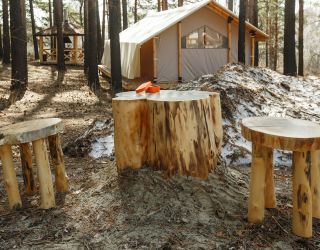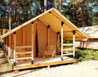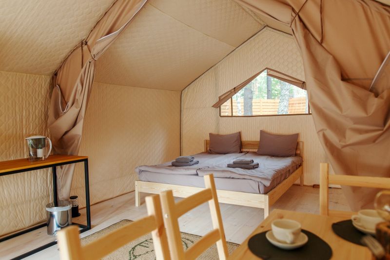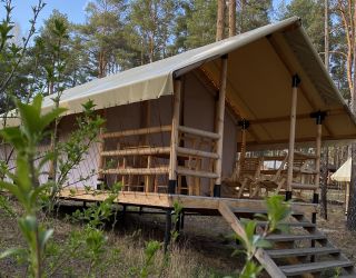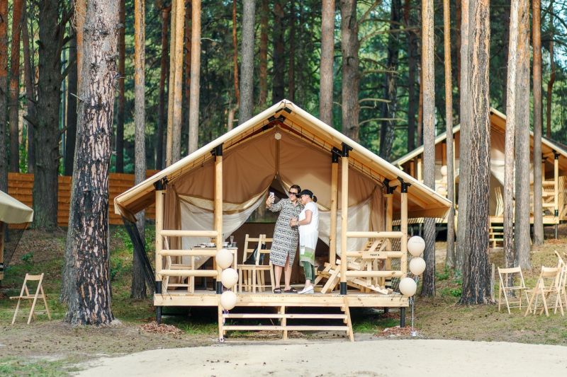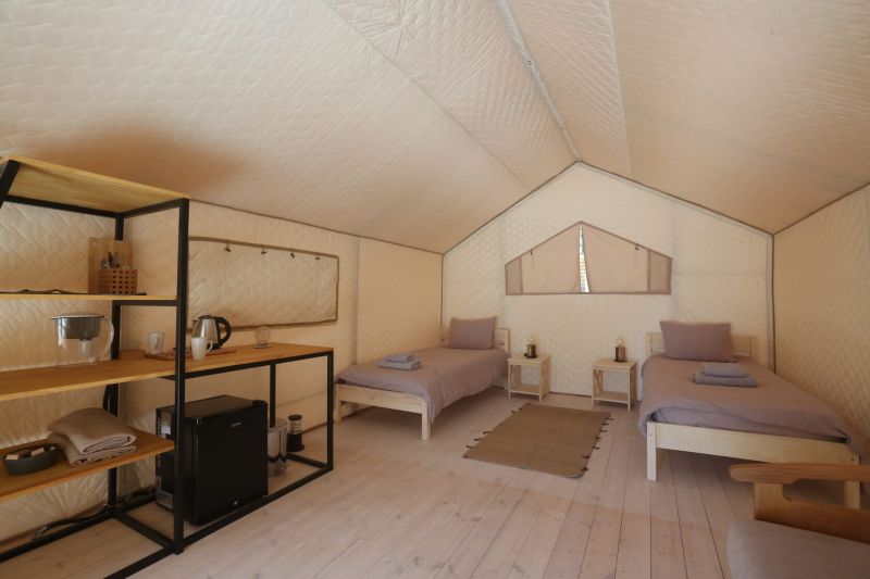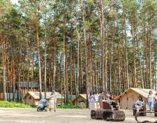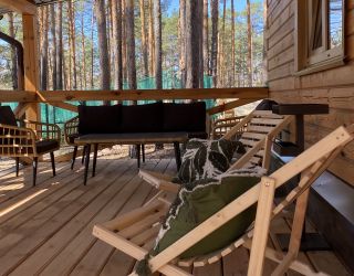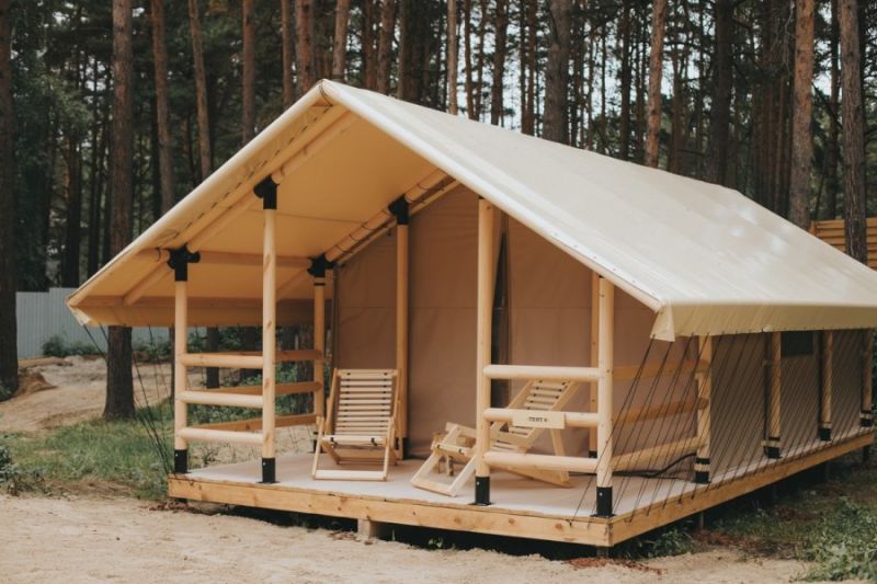 Комплекс отлично для тех, кто любит отдых в условиях дикой природы, но при этом не готов отказываться от удобств. На территории площадью 1 гектар расположились уютные глэмпинги — тенты, вмещающие до 4—5 человек, и комфортабельные двухэтажные дома с банями. Все постройки органично вписываются в окружающую природу, не меняя, а лишь дополняя лесной ландшафт. В каждом глэмпинге — удобные кровати, обеденная зона, проведено электричество, есть чайник и мини-холодильник. Удобства тоже есть — санузел с душем расположены в санитарном блоке. В домах - две спальни, гостиная с зоной отдыха и полностью оборудованная кухня. Помимо бань, в домах имеется и уютная терраса, где приятно встречать рассветы или провожать закаты.
